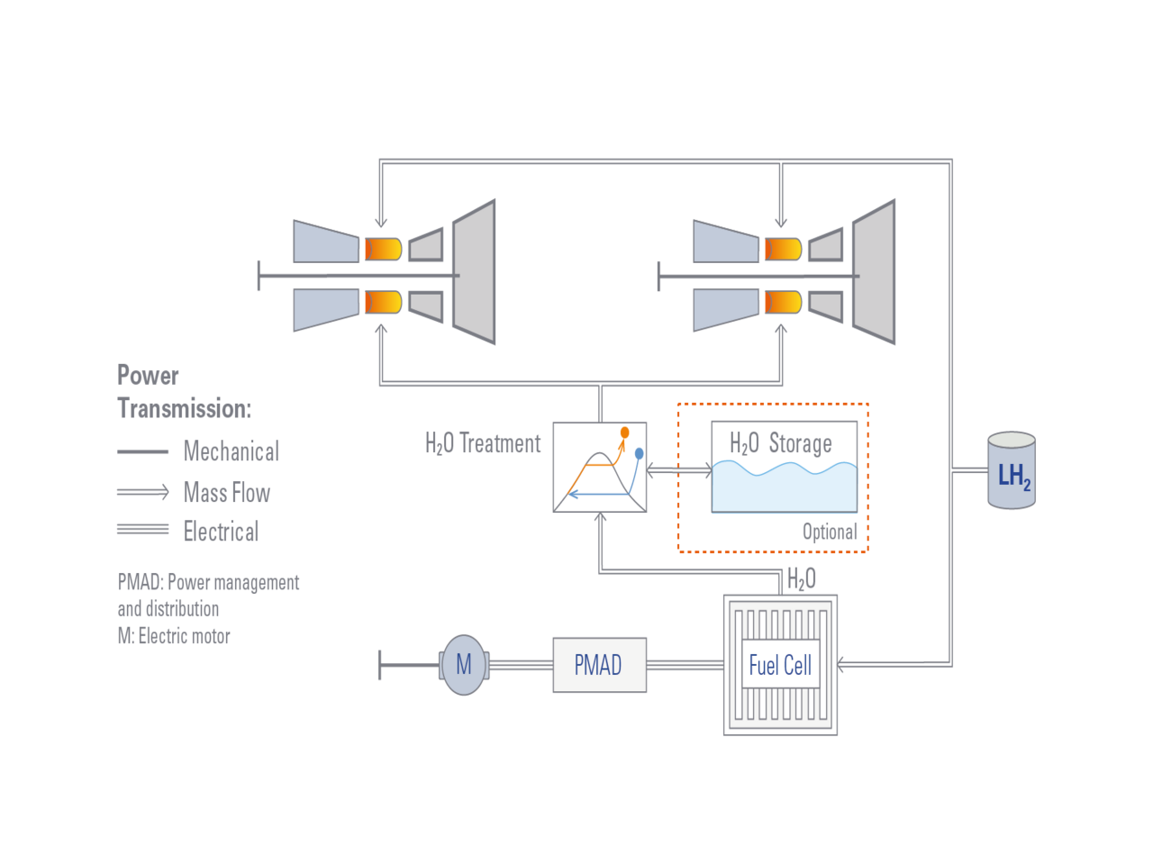 Forscher*innen des Bauhaus Luftfahrt haben nun eine erste technische Bewertung einer synergetischen Kombination aus Brennstoffzellen- und Gasturbinentechnologie vorgenommen, die im Bauhaus-Luftfahrt-Jahrbuch 2020 erstmals vorgestellt wurde. Das vorgeschlagene Hybridkonzept nutzt den von einer Brennstoffzelle erzeugten Wassermassenstrom, um den Wirkungsgrad, die Leistung und die NOx-Emissionseigenschaften des Gasturbinentriebwerkes durch Dampfeinspritzung in der Brennkammer zu verbessern.