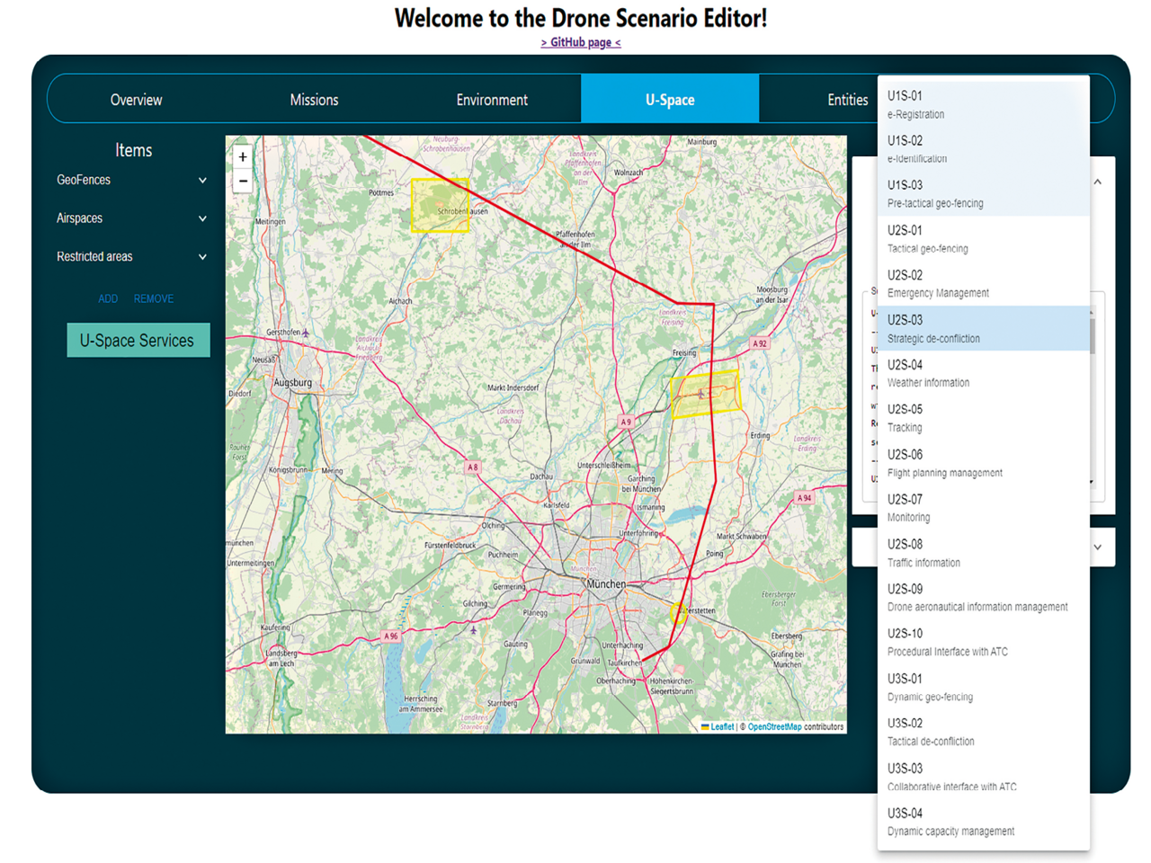 Ein Ziel der Arbeit ist die automatisierte Einrichtung und Durchführung der realistischen Simulation von Drohnenmissionen in einer virtuellen Umgebung unter Berücksichtigung des U-Space- Frameworks zur Luftraumintegration. Das Szenario-Format wird mittels relevanter Testfälle validiert. Für die Entwicklung sicherer autonomer Fluggeräte wird der Szenario-Editor nach Projektabschluss als Open-Source-Software veröffentlicht.