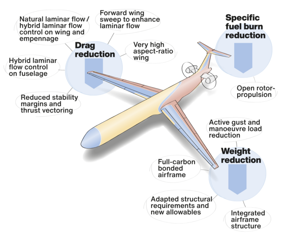 Bis zu 50 % energieeffizientere Flugzeuge: Das DGLR-Paper „The Energy-Efficient Aircraft of the Future: A Long-Term Perspective“ zeigt die größten Einsparpotenziale aus den Bereichen Aerodynamik, Flugzeugzelle, Flugzeugsteuerung, Antriebssysteme und Flugzeugsysteme auf. Daraus werden vielversprechende Flugzeugkonfigurationen abgeleitet und bewertet. Zentrale Faktoren für eine Umsetzung: eine multidisziplinäre Optimierung, Änderungen bei der Zulassung von Luftfahrzeugen und überarbeitete betriebliche Anforderungen.