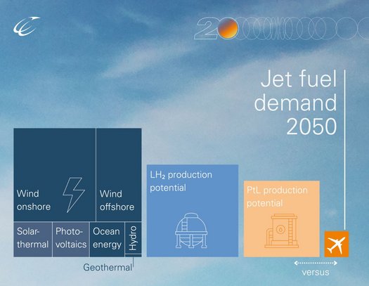 Crude oil-based biofuels cannot be produced sustainably on the scale required. Advanced biofuels and solar and electricity-based fuels will be needed to meet a large part of future energy demand. In addition to synthetic kerosene, which is compatible with the current fleet, the direct use of liquefied hydrogen offers an important long-term prospect.
