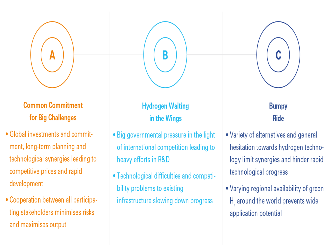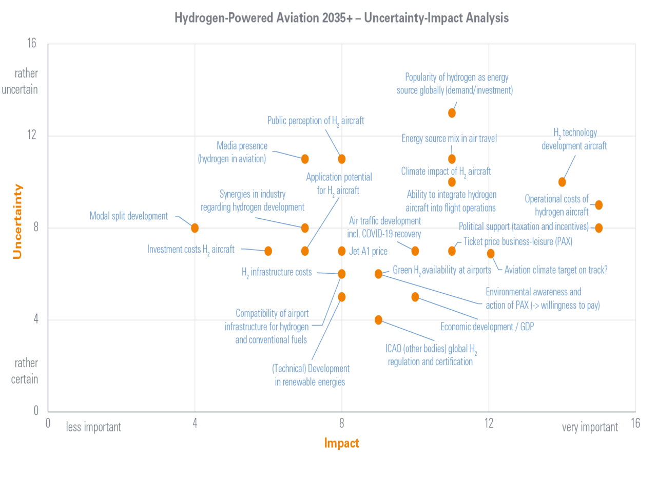 From these findings, implications can be derived for various stakeholders. Airports, for example, are faced with major challenges due to the required infrastructure for storage and distribution, the establishment of safety standards for handling hydrogen, and ensuring the parallel operation of conventional and hydrogen-powered aircraft.