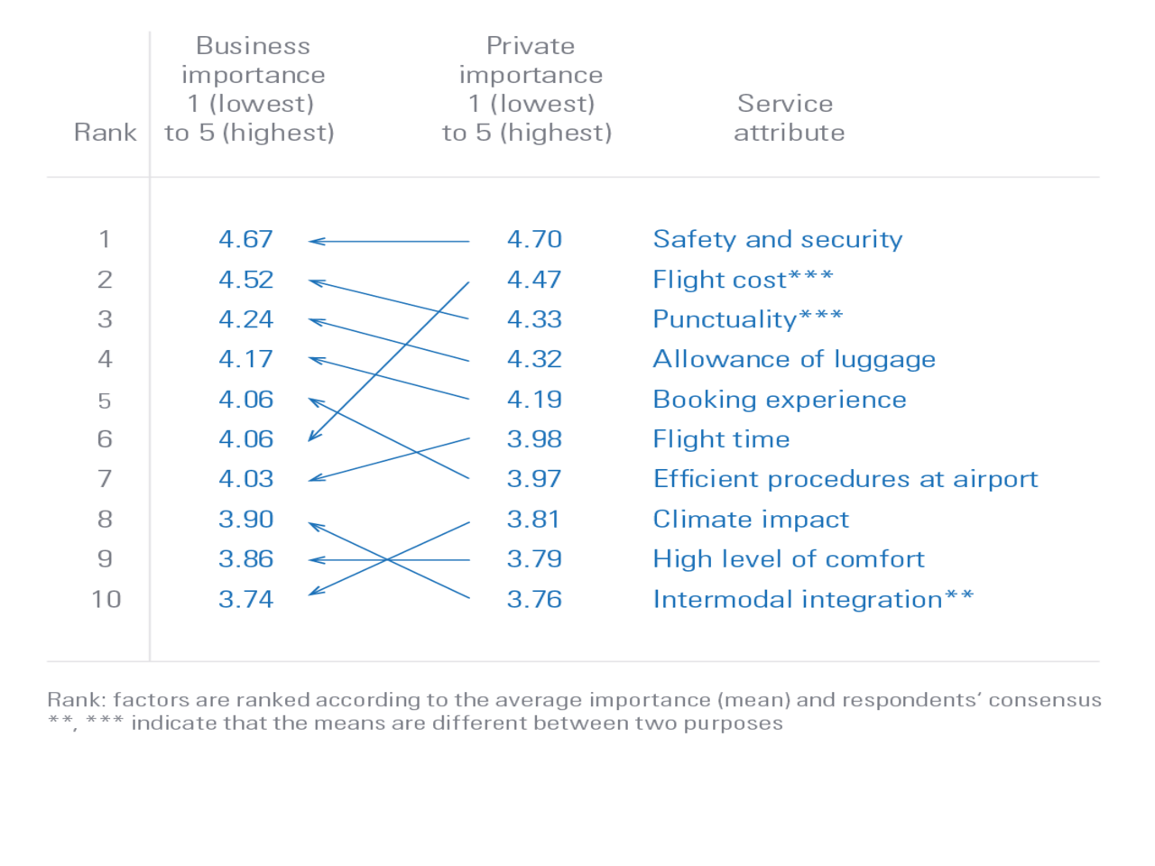 The key results are that a large majority (74 %) of the respondents agree that they would consider flying with hybrid-electric aircraft. The majority (77 %) of the respondents who would consider flying with hybrid-electric aircraft envision private travel purposes such for leisure and social activities as main purposes. Among the respondents who would not consider flying with hybrid-electric aircraft, 36 % indicated safety concerns in general, followed by 18 % indicating a lack of trust in regulatory authorities. Regarding the areas of concern, 42 % of the respondents agree that they are concerned about the potential risks of electric propulsion. Slightly less than one-third of the respondents agree that they are concerned about the negative climate impact of electricity and hydrogen production. The regression analysis results show a reduced acceptance intention in case of passengers’ stronger concerns about safety and comfort and an increase in case of stronger climate concerns and general trust towards new mobility technology.